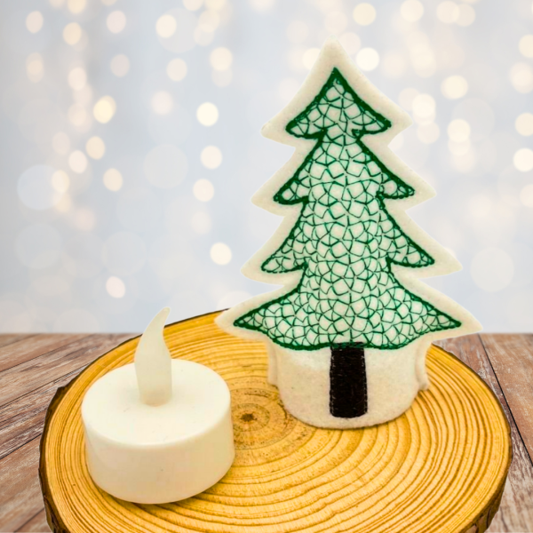 1 LED-Cover Tanne bestickt -ohne LED-Teelicht- Nr. 2