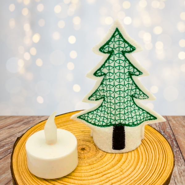 1 LED-Cover Tanne bestickt -ohne LED-Teelicht- Nr. 3