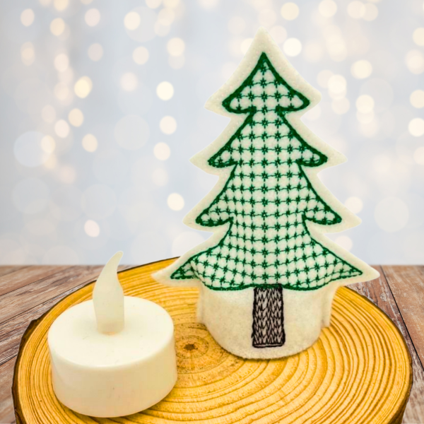 1 LED-Cover Tanne bestickt -ohne LED-Teelicht- Nr. 8