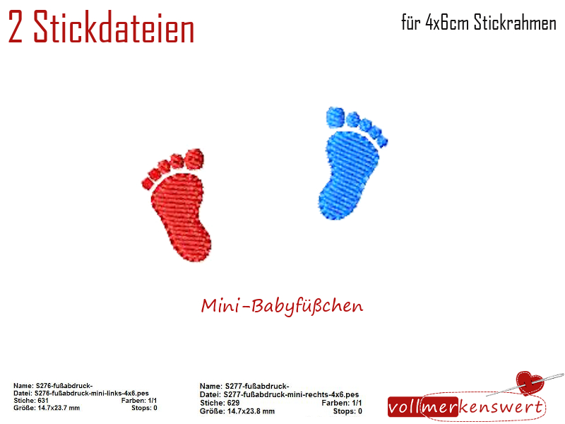 2 Stickdateien Fußabdruck Mini links und rechts im Set für den 4x6cm Stickrahmen S276+S277-set-01
