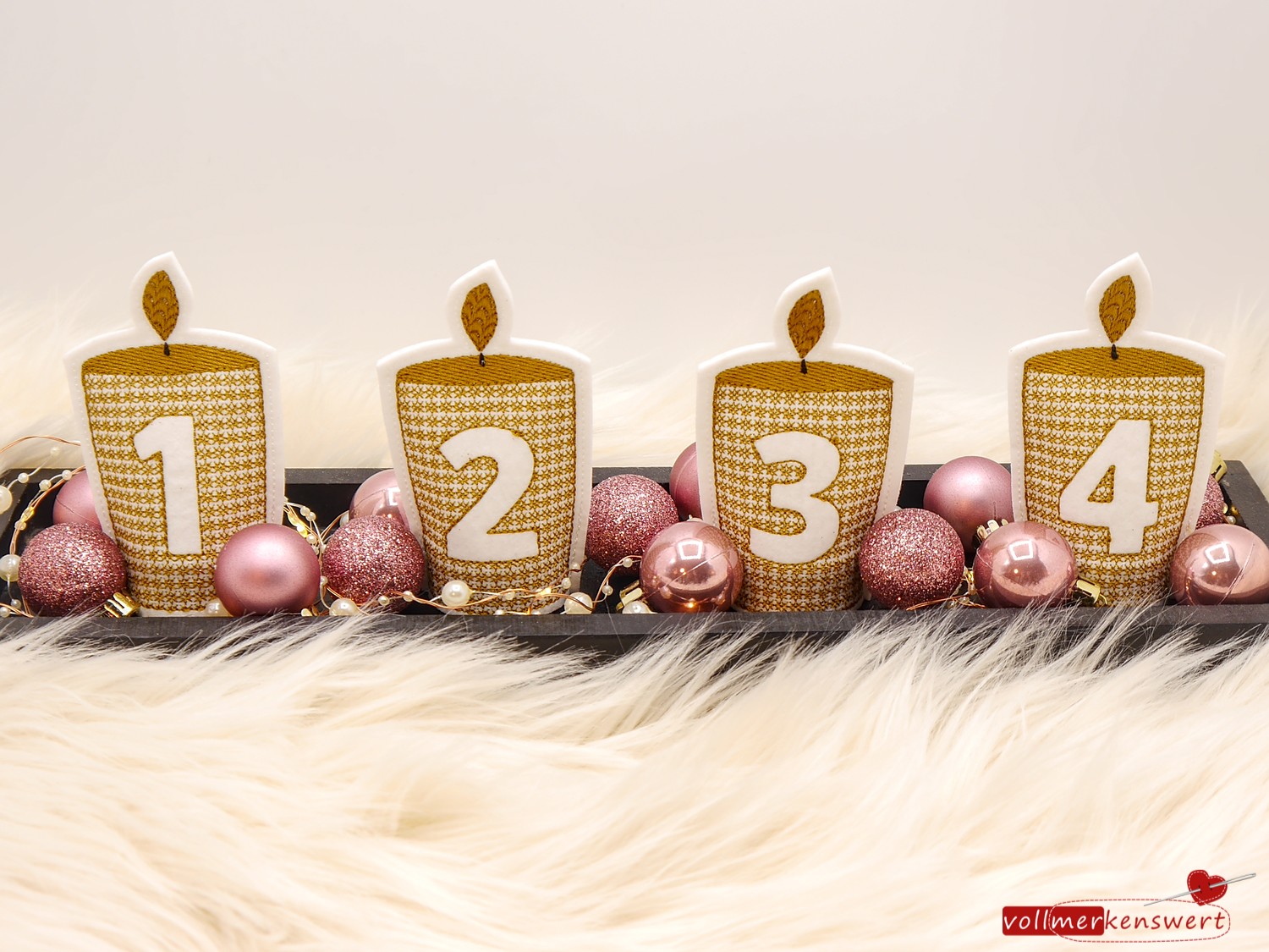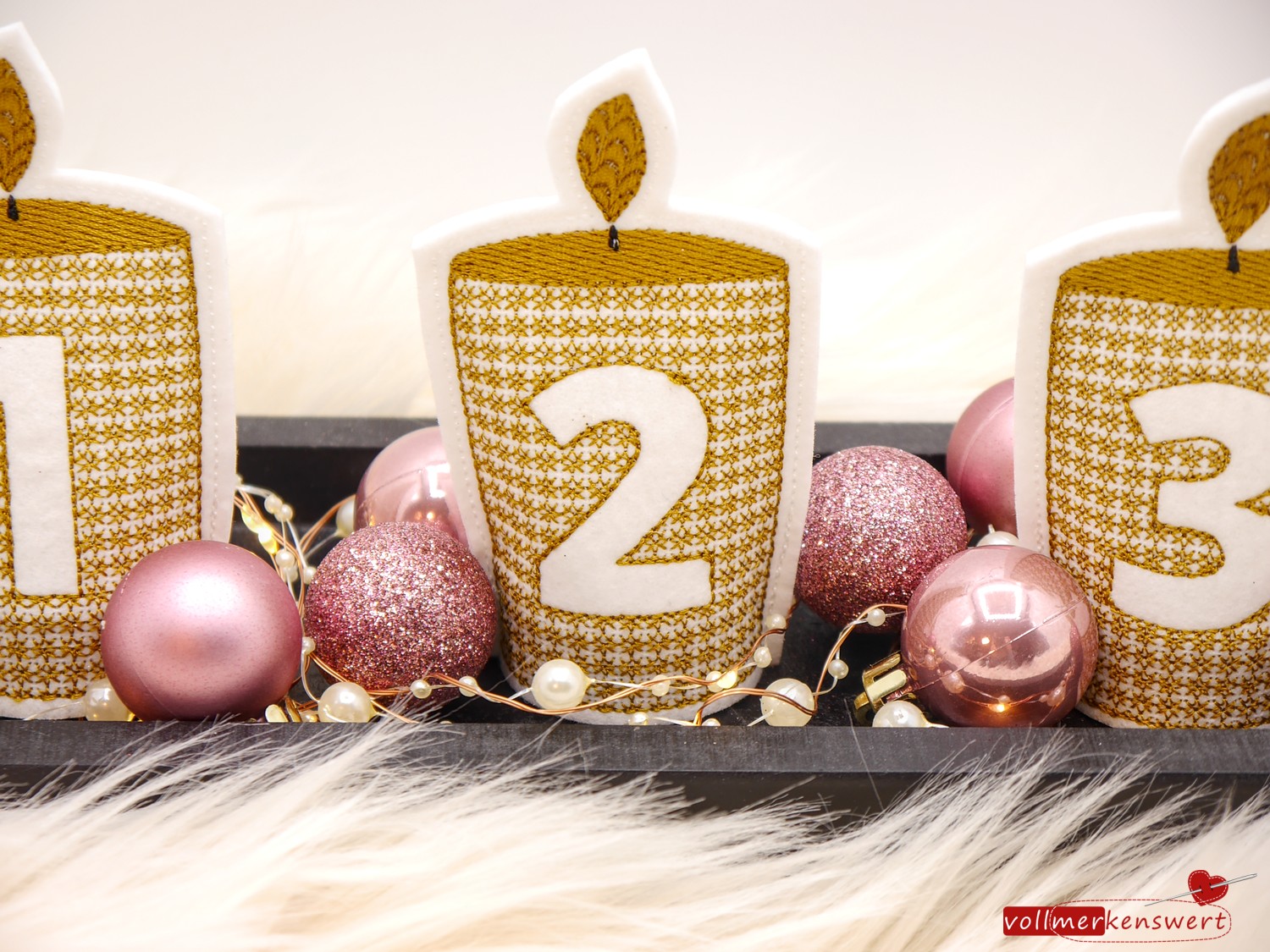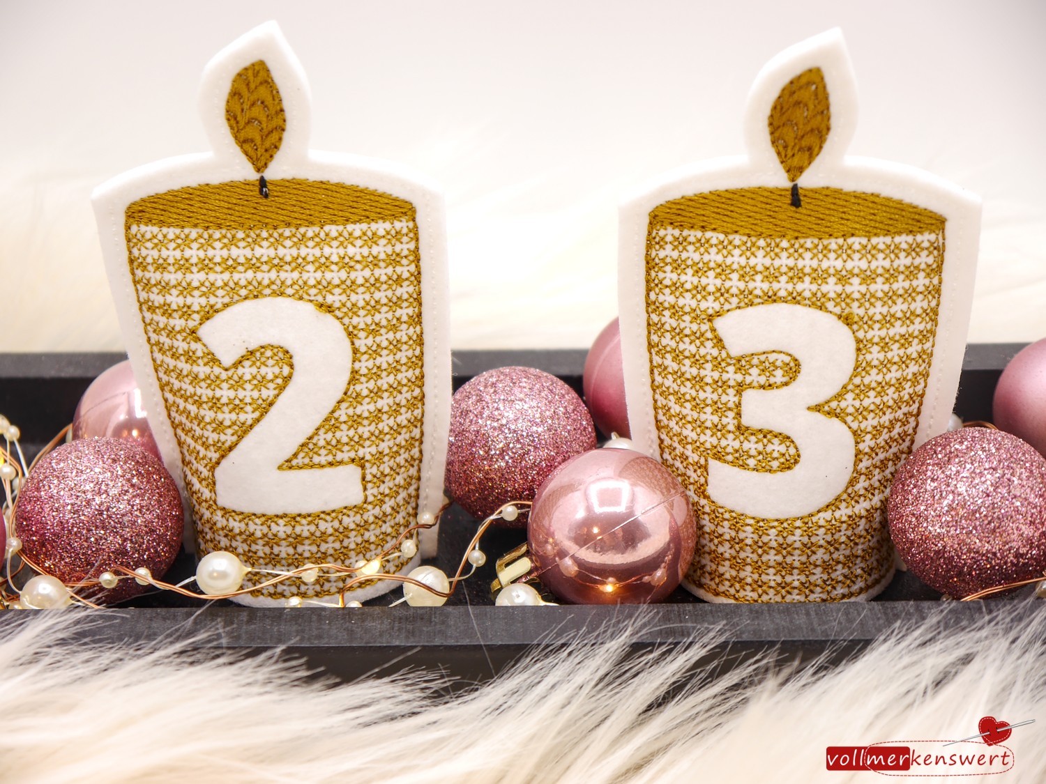 Sie sind schnell gestickt und super geeignet z. B. für den Adventskranz (im Büro, Schule, Krankenhaus, Kinderzimmer usw.