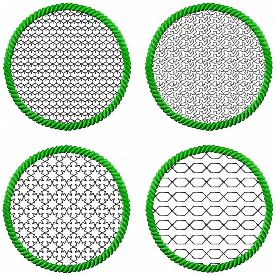 4 ITH-Stickdateien MugRug Untersetzer im Set für 10x10 cm Stickrahmen Set 03