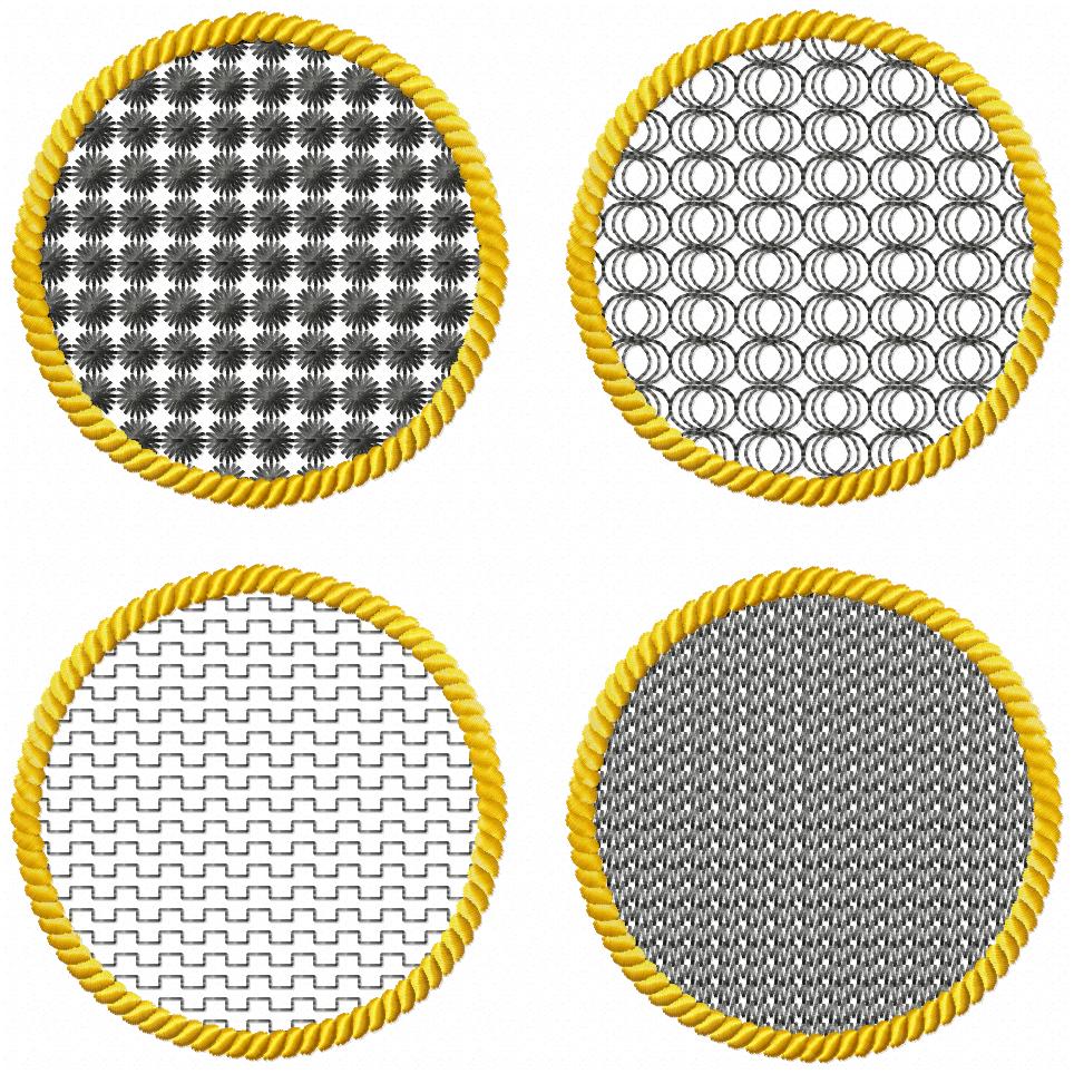 4 ITH-Stickdateien MugRug Untersetzer im Set für 10x10 cm Stickrahmen Set 05