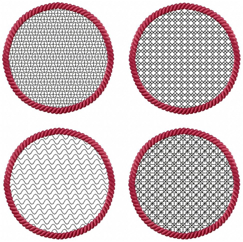 4 ITH-Stickdateien MugRug Untersetzer im Set für 10x10 cm Stickrahmen Set 13