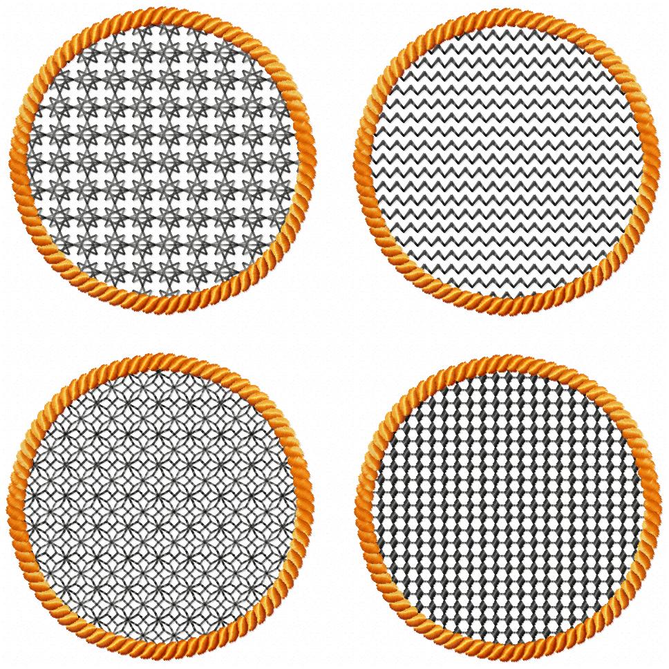 4 ITH-Stickdateien MugRug Untersetzer im Set für 10x10 cm Stickrahmen Set 14