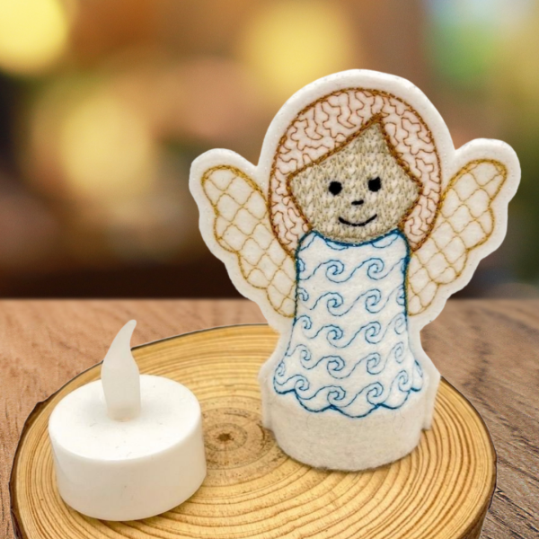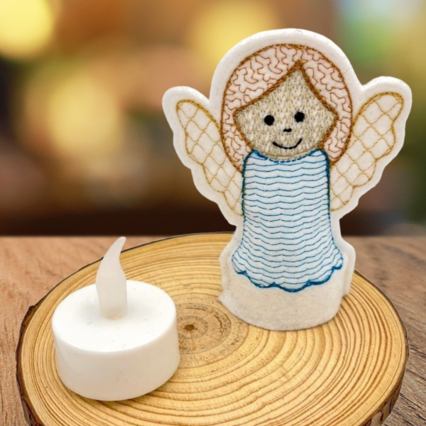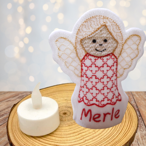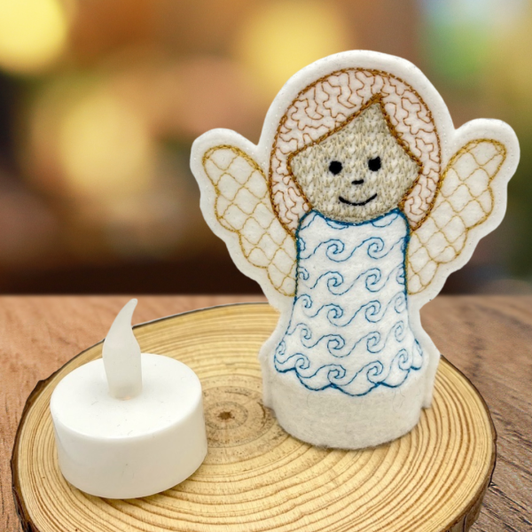 Diese 6 LED-Engel haben wir für dich zum Sticken als ITH-Stickdatei für den 10 x 10 cm Stickrahmen erstellt.