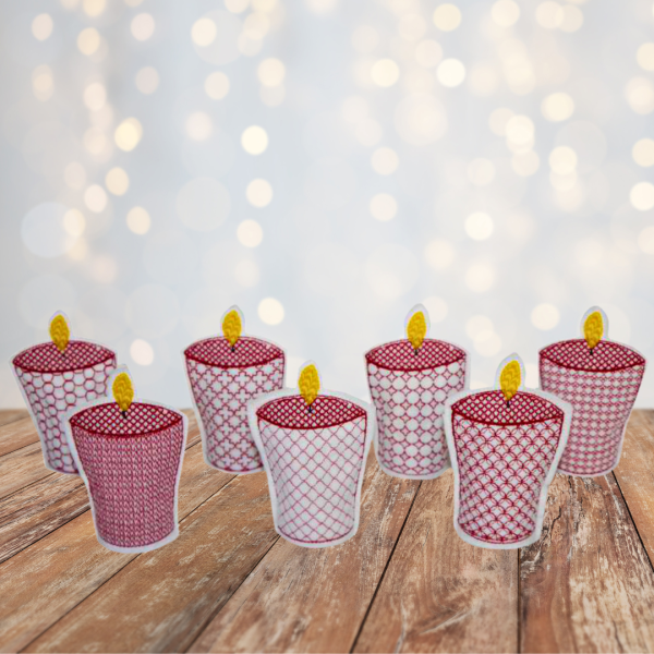 Diese 7 Kerzen "in-the-hoop"-Stickdateien haben wir für Euch mit verschiedenen wunderschönen Füllmustern erstellt.