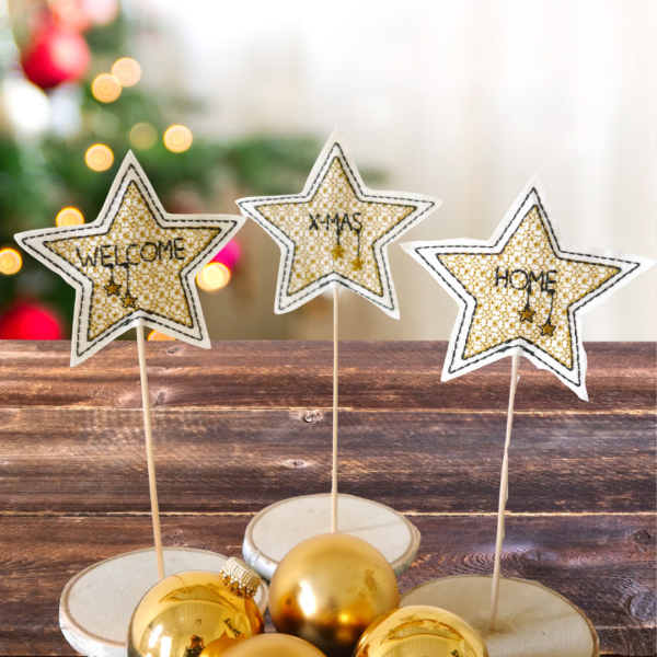 8 Stickdateien ITH-Sterne auf Stab im Set für 10x10cm Stickrahmen