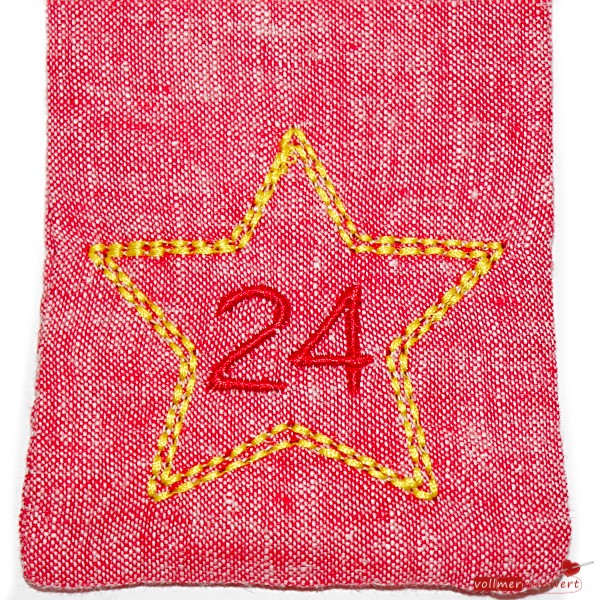 Adventskalender aus Stoff zum Befüllen bestickt mit Stern und Zahl Leinenoptik edel