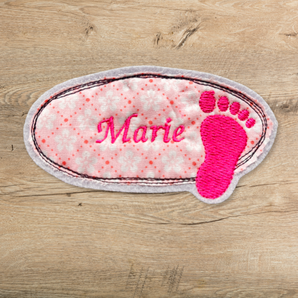 Aufnäher Fußabdruck "Marie" im Doodle-Rahmen A081-01