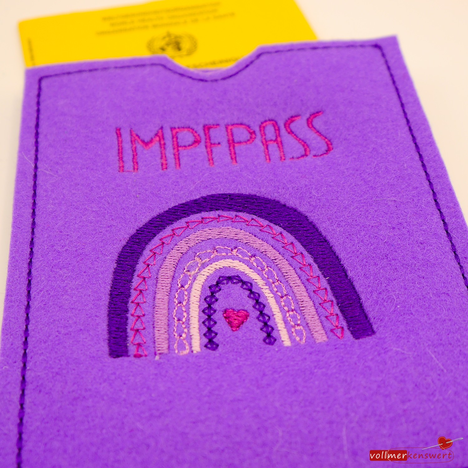 Wunderschöne ITH-Stickdatei mit Regenbogen als Impfpasshülle.