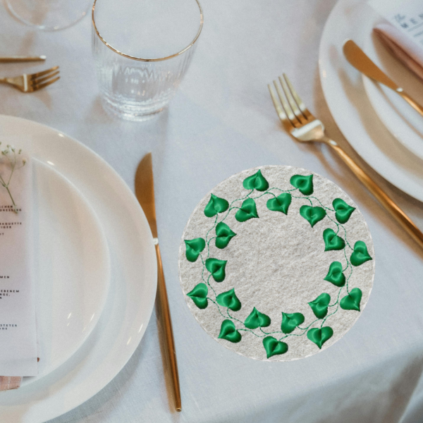 Auf hochwertigen Wollfilz gestickt werden wunderschöne und zeitlose Untersetzer daraus.