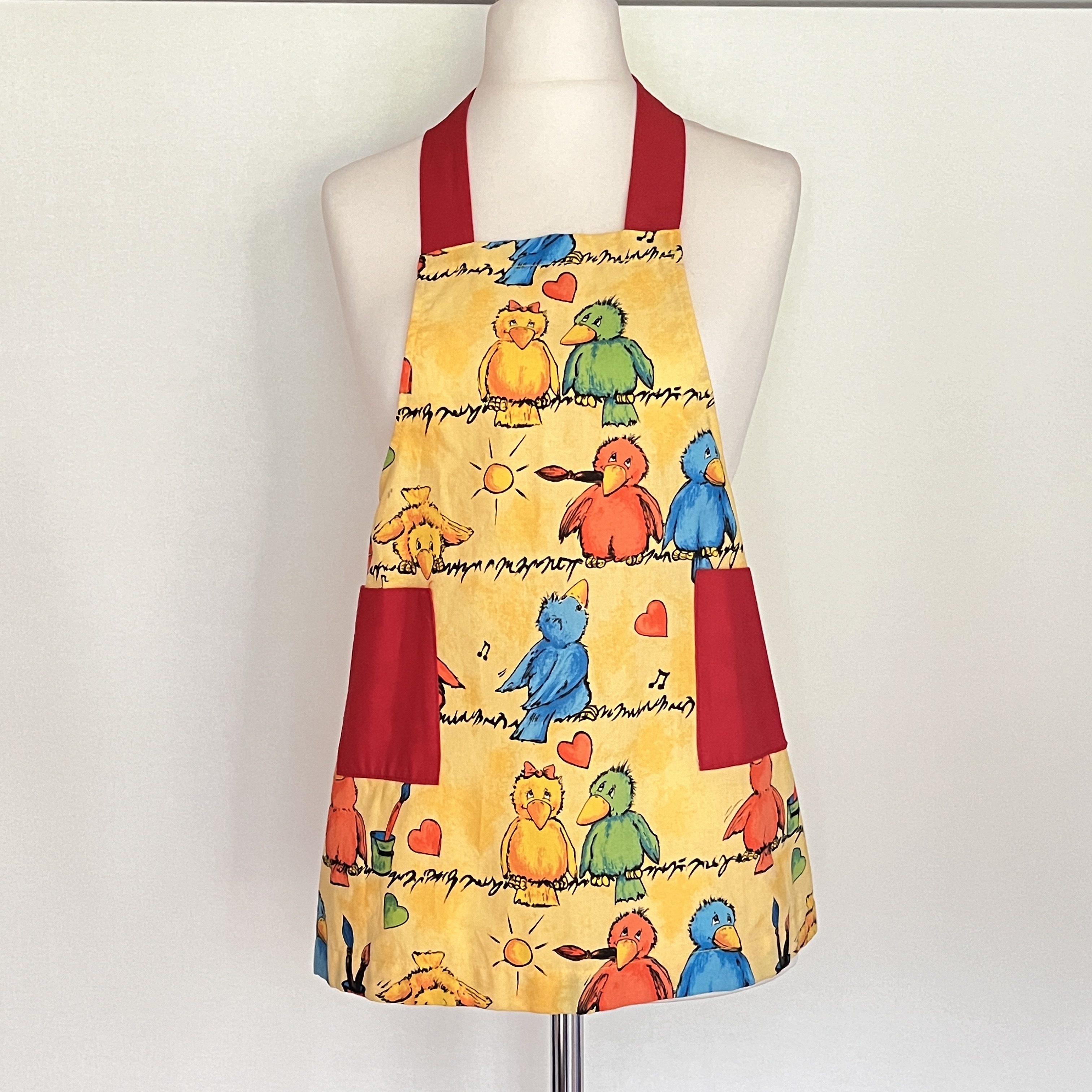 Kinderschürze für Mädchen mit lustigen Vögeln