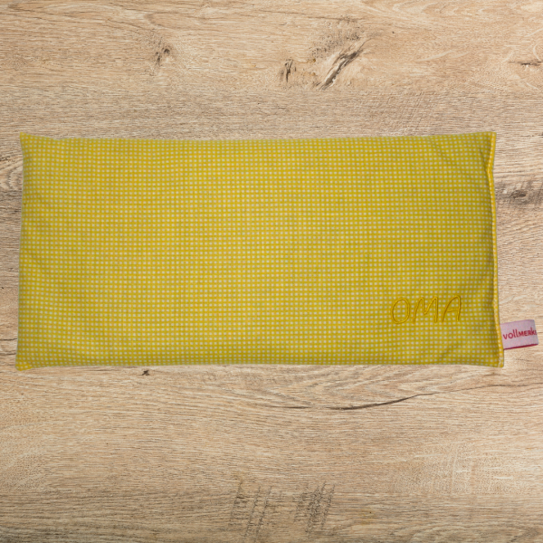Körnerkissen OMA bestickt gelb-weiß-gemustert -sofort lieferbar-