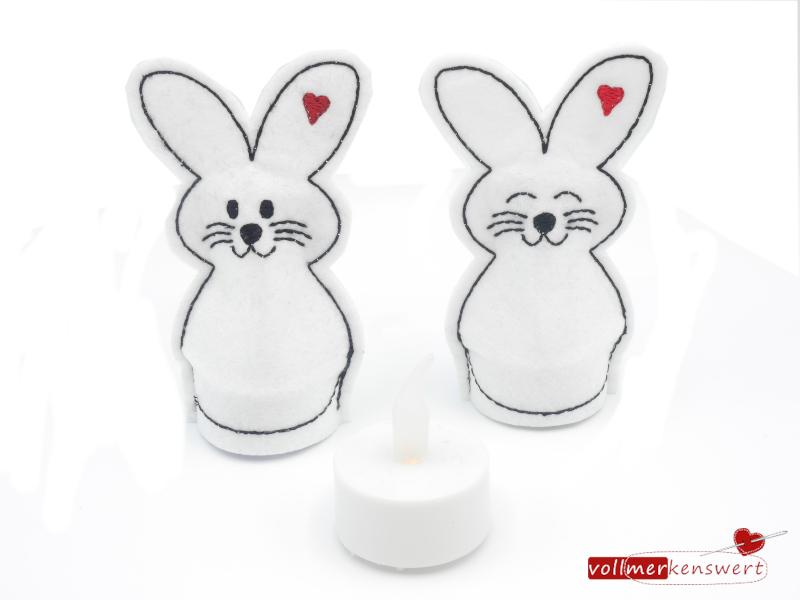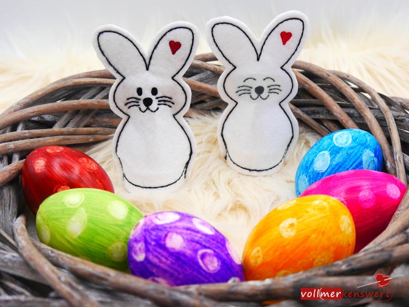 Diese niedlichen Hasen verbreiten nicht nur zu Ostern gute Laune! Wir haben sie für Dich als LED-Cover gestickt.