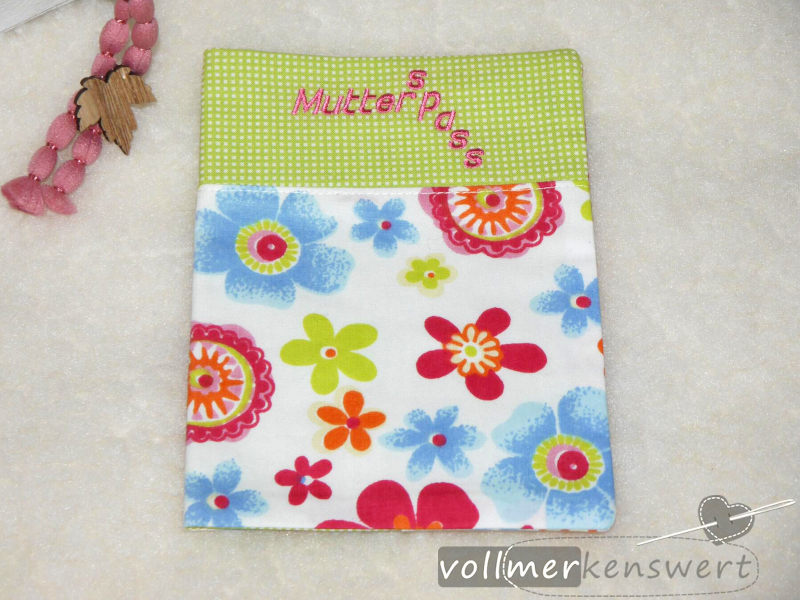 Damit er gut geschützt und auch noch hübsch aussieht, haben wir für dich diese wunderschöne Mutterpasshülle genäht und mit einer wunderschönen Stickdatei bestickt.