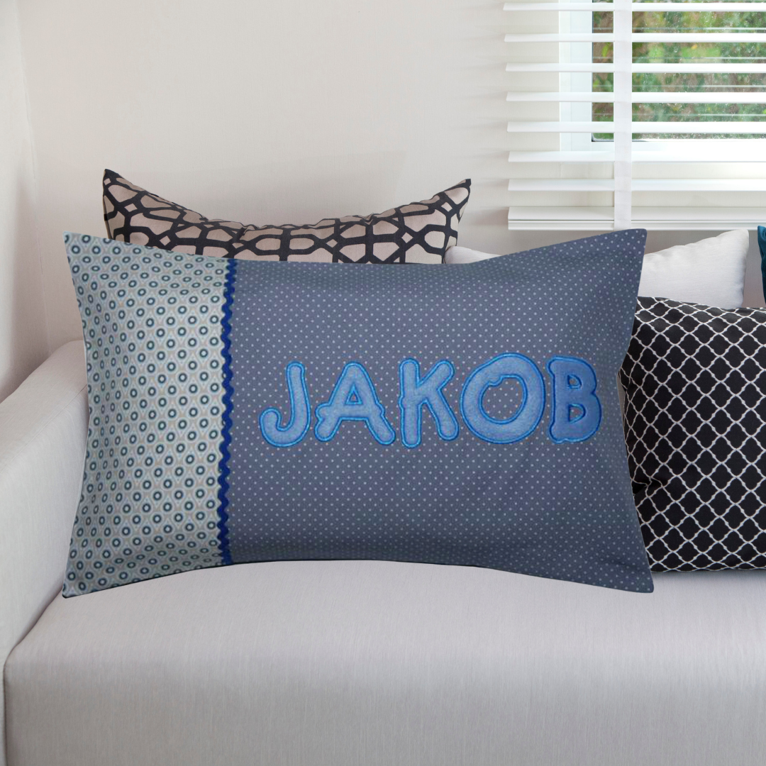 Namenskissen-Hülle 30x50 cm mit Wunschname bestickt als Namensapplikation