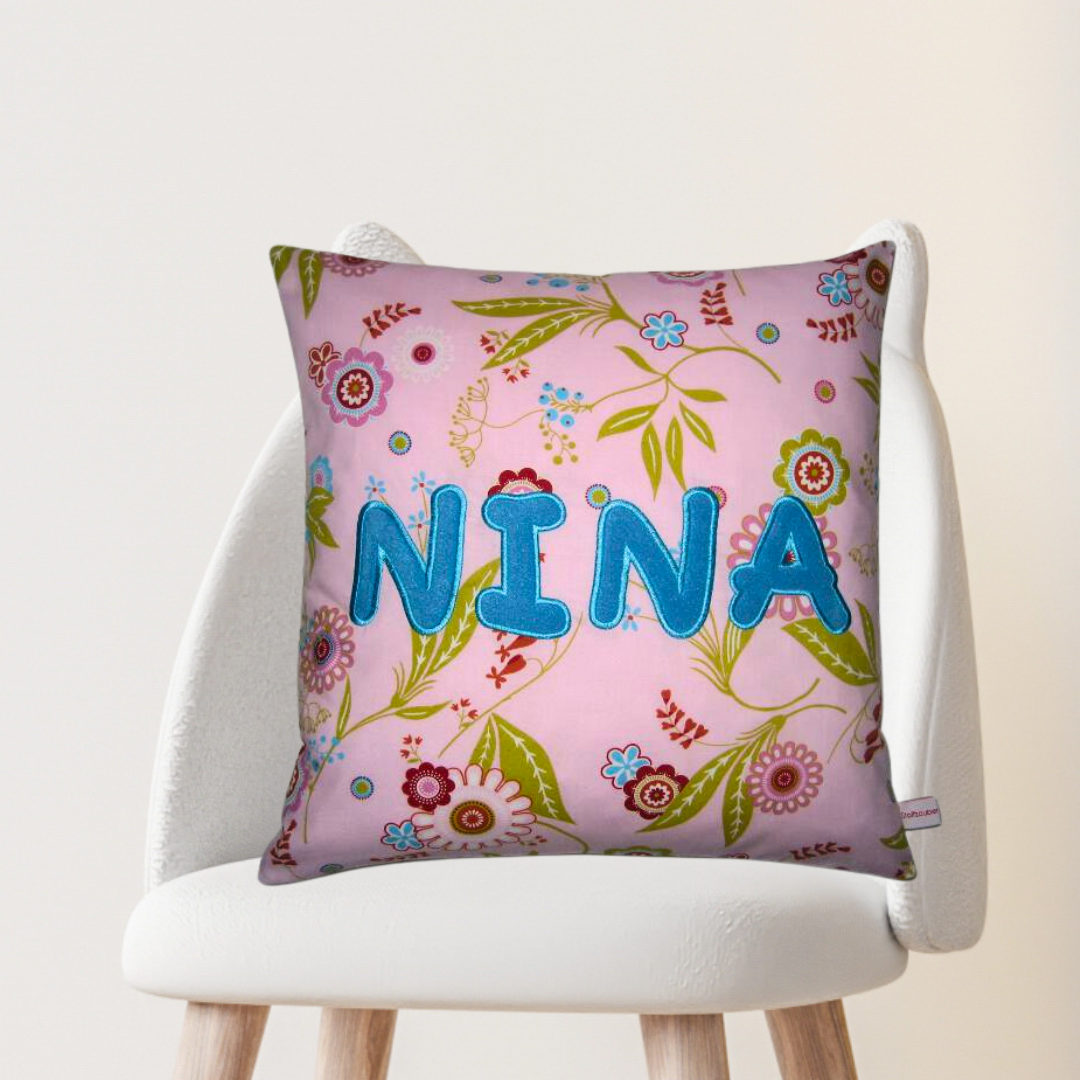 Namenskissen-Hülle mit Wunschname als Namensapplikation bestickt 40x40 cm