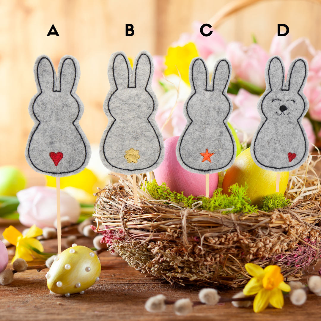Stabfigur / Blumenstecker / Caketopper - Hase als Osterdeko aus Wollfilz