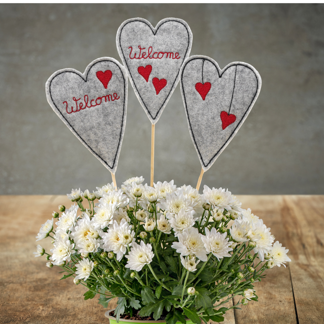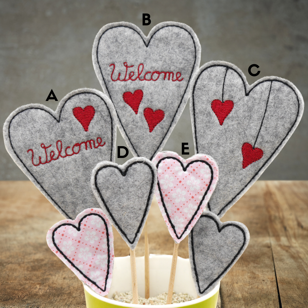 Diese wunderschönen Herzen haben wir aus hochwertigem Wollfilz gefertigt und bestickt. Du kannst aus verschiedenen Modellen und Größen wählen.