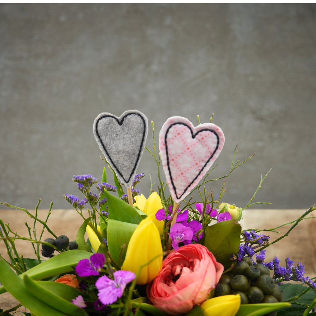 Stabfigur / Blumenstecker / Caketopper - Herz aus Wollfilz