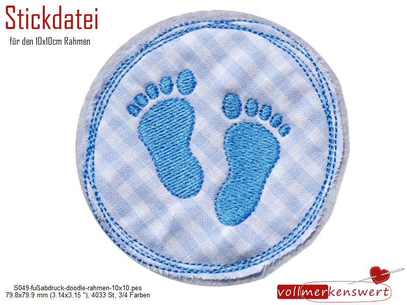 Stickdatei Babyfüße im Doodle-Rahmen Button für den 10x10cm Stickrahmen S049