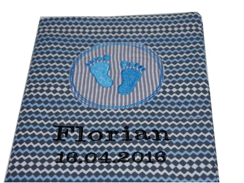 Mit dieser Stickdatei kannst Du schnell Deine Werke besticken; egal ob U-Hefthüllen, Mutterpasshüllen, Windeltaschen oder weitere Babyartikel.