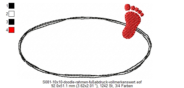 Stickdatei Doodle-Rahmen mit Fußabdruck für 10x10cm Stickrahmen - Applikation - Aufnäher S081
