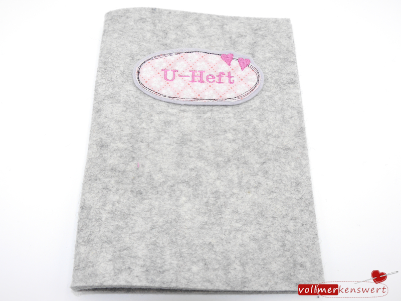 Diese Doodle-Rahmen-Applikation mit den 2 Herzen sieht super auf einer U-Hefthülle oder Mutterpasshülle aus.