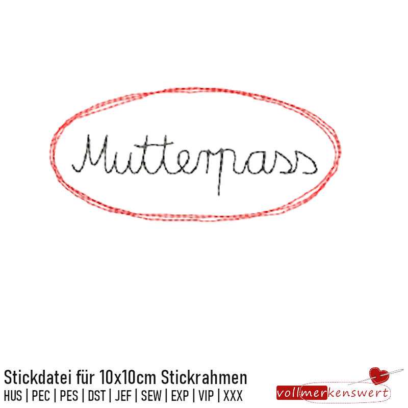 Stickdatei Doodle-Rahmen Mutterpass für 10x10cm Stickrahmen - Applikation - Aufnäher S073