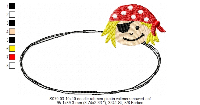Stickdatei Doodle-Rahmen Piratin -blanko- für 10x10cm Stickrahmen - Applikation - Aufnäher S070-03