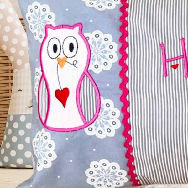 Diese niedliche Eule mit Herz haben wir als Applikations-Stickmuster erstellt.