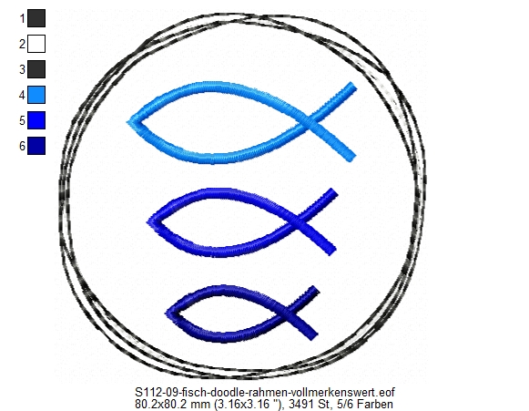 Stickdatei Fisch Ichthys im Doodle-Rahmen für 10x10cm Stickrahmen S112-09