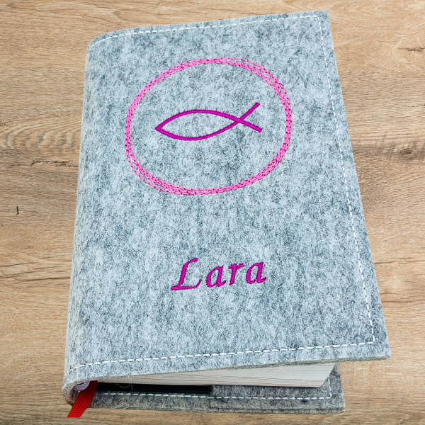 Schlichte und schnell gestickte Fisch-Stickdatei im Doodle-Rahmen. Perfekt für die Kommunion z. B. für Gotteslobhüllen und weiteren religiösen Artikeln.