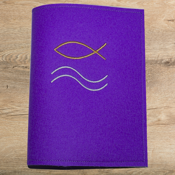 Schlichte und schnell gestickte Fisch-Stickdatei. Perfekt für die Kommunion z. B. für Gotteslobhüllen und weiteren religiösen Artikeln.