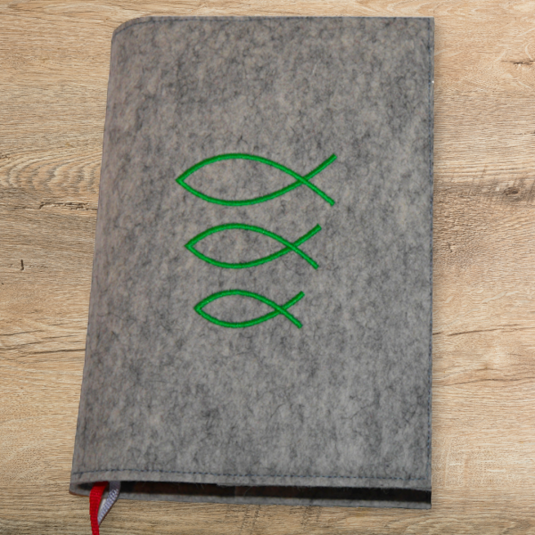 Schlichte und schnell gestickte Fisch-Stickdatei. Perfekt für die Kommunion z. B. für Gotteslobhüllen und weiteren religiösen Artikeln.
