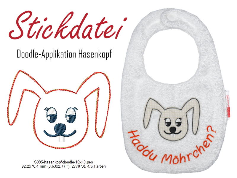 Stickdatei Hasenkopf als Doodle-Applikation für10x10cm Stickrahmen S095-01