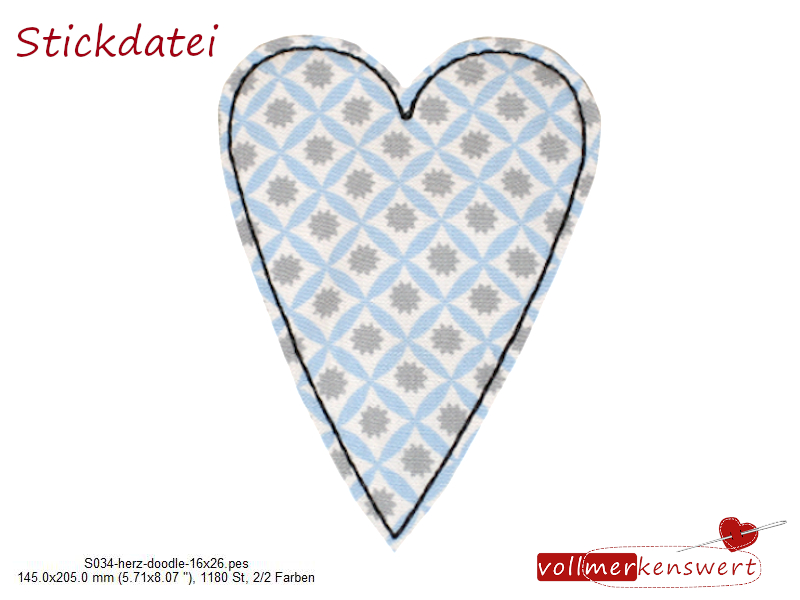 Stickdatei Herz als Doodle-Applikation für den 16x26 cm Stickrahmen S034