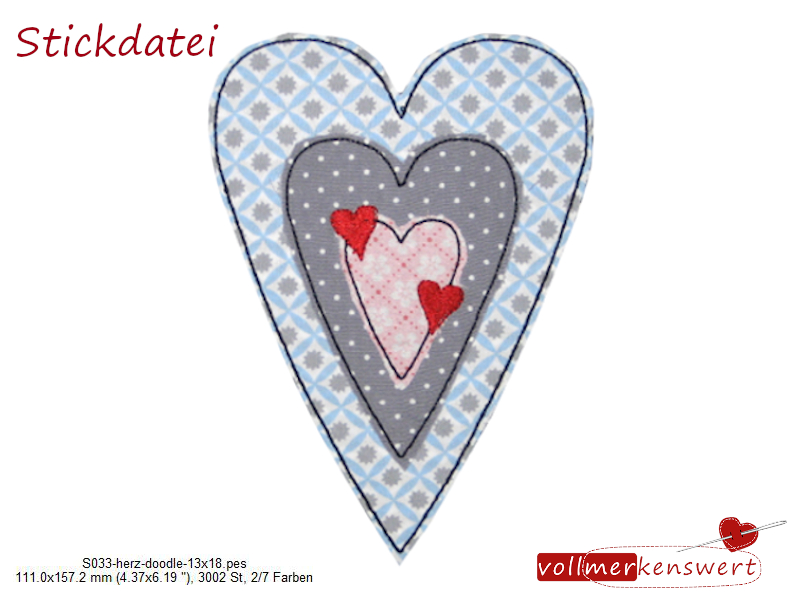 Stickdatei Herz mit Herzen als Doodle-Applikation für den 13x18 cm Stickrahmen S033