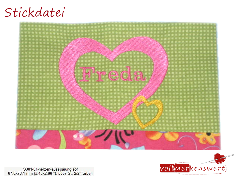 Dieses Herz mit Aussparung ist schnell gestickt. In die Aussparung kann ein Name oder Schriftzug hinzugefügt werden.