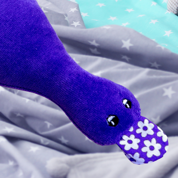 Die Ente wird -bis auf eine kleine Wendeöffnung- komplett in der Stickmaschine gestickt.