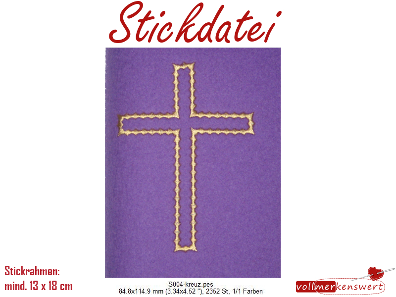 Dieses schlichte Kreuz ist schnell gestickt und sieht super auf Gotteslobhüllen oder sonstigen religiösen Artikeln aus.