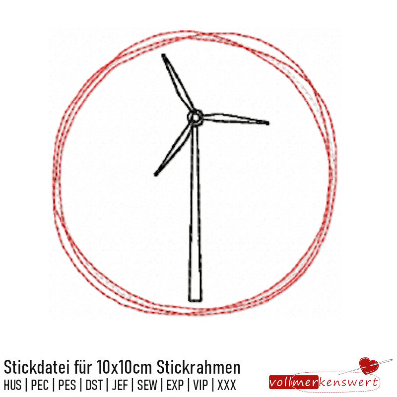 Diese schlichte Windrad-Stickdatei im Doodle-Rahmen begeistert nicht nur Windradfans!