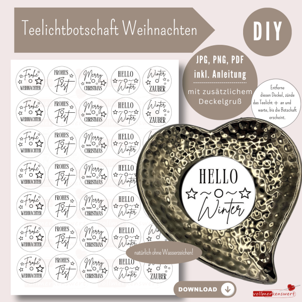 Die Teelichtbotschaften sind schöne Geschenke für Freunde und Familie und eine wunderschöne Dekoration für die Weihnachtszeit.