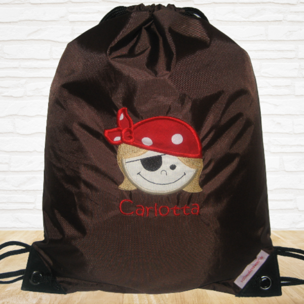 Nicht nur zum Sport ein praktischer Begleiter: der hübsche und zugleich nützliche Turnbeutel wird mit einem Stickmotiv deiner Wahl und einem Namen bestickt.