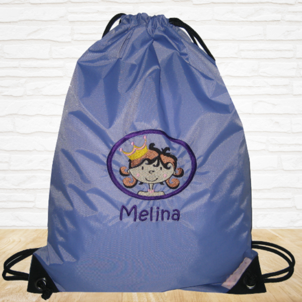 Nicht nur zum Sport ein praktischer Begleiter: der hübsche und zugleich nützliche Turnbeutel wird mit einem Stickmotiv deiner Wahl und einem Namen bestickt.
