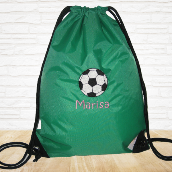 Turnbeutel "Sporty" mit Wunschmotiv und Name bestickt für Kindergartenkinder & Große -personalisiert- Farbe: grasgrün