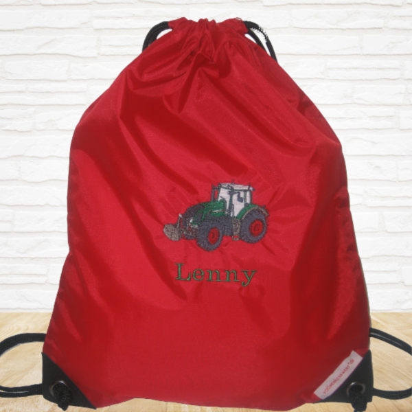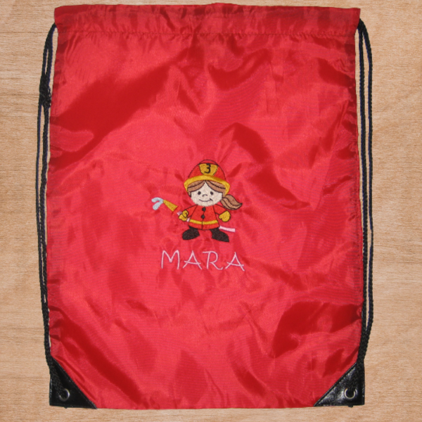 Turnbeutel "Sporty" mit Wunschmotiv und Name bestickt für Kindergartenkinder & Große -personalisiert- Farbe: rot