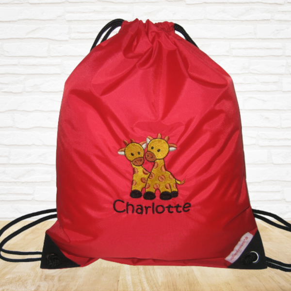Nicht nur zum Sport ein praktischer Begleiter: der hübsche und zugleich nützliche Turnbeutel wird mit einem Stickmotiv deiner Wahl und einem Namen bestickt.