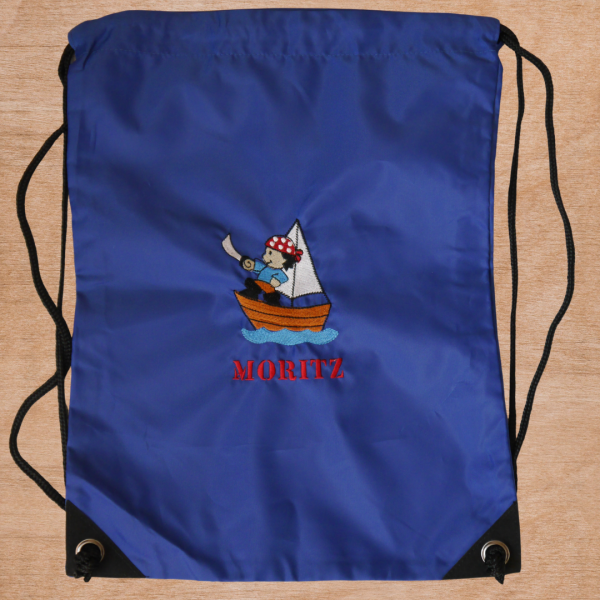 Nicht nur zum Sport ein praktischer Begleiter: der hübsche und zugleich nützliche Turnbeutel wird mit einem Stickmotiv deiner Wahl und einem Namen bestickt.